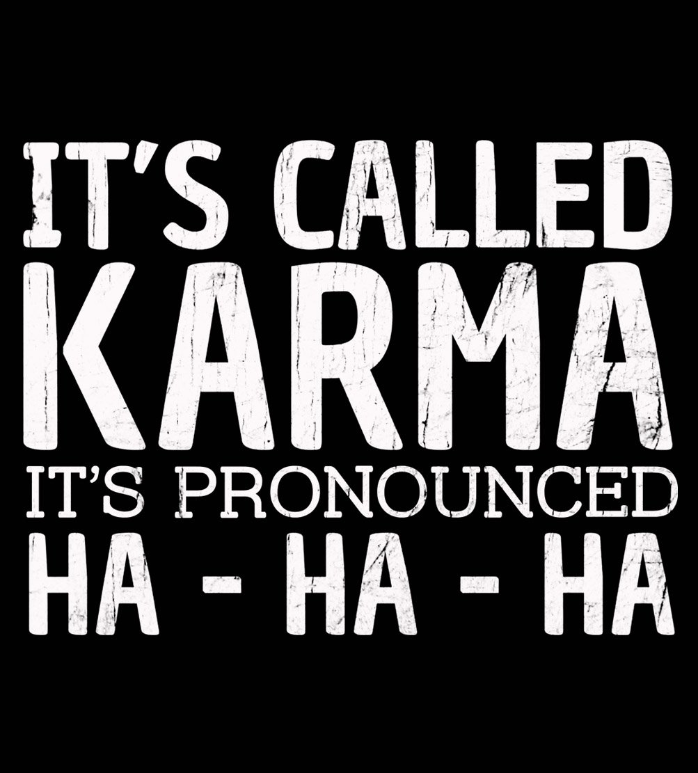 - Unleash your inner villain with this savage tee that reads "It’s Called Karma It’s Pronounced Ha Ha Ha." Made for those who don’t forgive—or forget—this darkly funny design delivers brutal honesty with a wicked grin. Perfect for roasting silently in style, it's ideal for those who thrive on sharp wit, cold justice, and watching karma do the dirty work. Serve payback with a punchline and zero regrets.